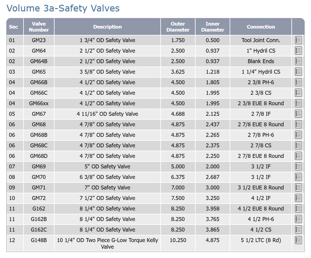 The Global safety valve is a valve with full bore of the end connections allowing anything that will go into the bore of the drill pipe or tubing to pass through the valve bore. The Global safety valves are manufactured to 10,000 and 15,000 PSI working pressure.
